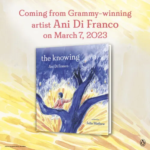With art by first-time illustrator Julia Mathew, THE KNOWING is an Ani DiFranco-style lullaby, inviting young readers to ponder the distinction between outer forms of identity and the inner light of consciousness. The lyrical text is designed to be read aloud or sung, and is paired with Mathew’s universal scenes of childhood, set in her family’s native India, and glowing with honesty and love. This book encapsulates ideas that Di Franco feels strongly about sharing with her own children and all children: all the adjectives that you will ever be called are only half the story. Underneath all the adjectives, you are pure presence — steady and shining and impossible to define.